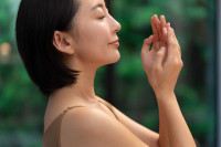 手のひらに2〜3プッシュ取り、少し温めながら呼吸を整える。